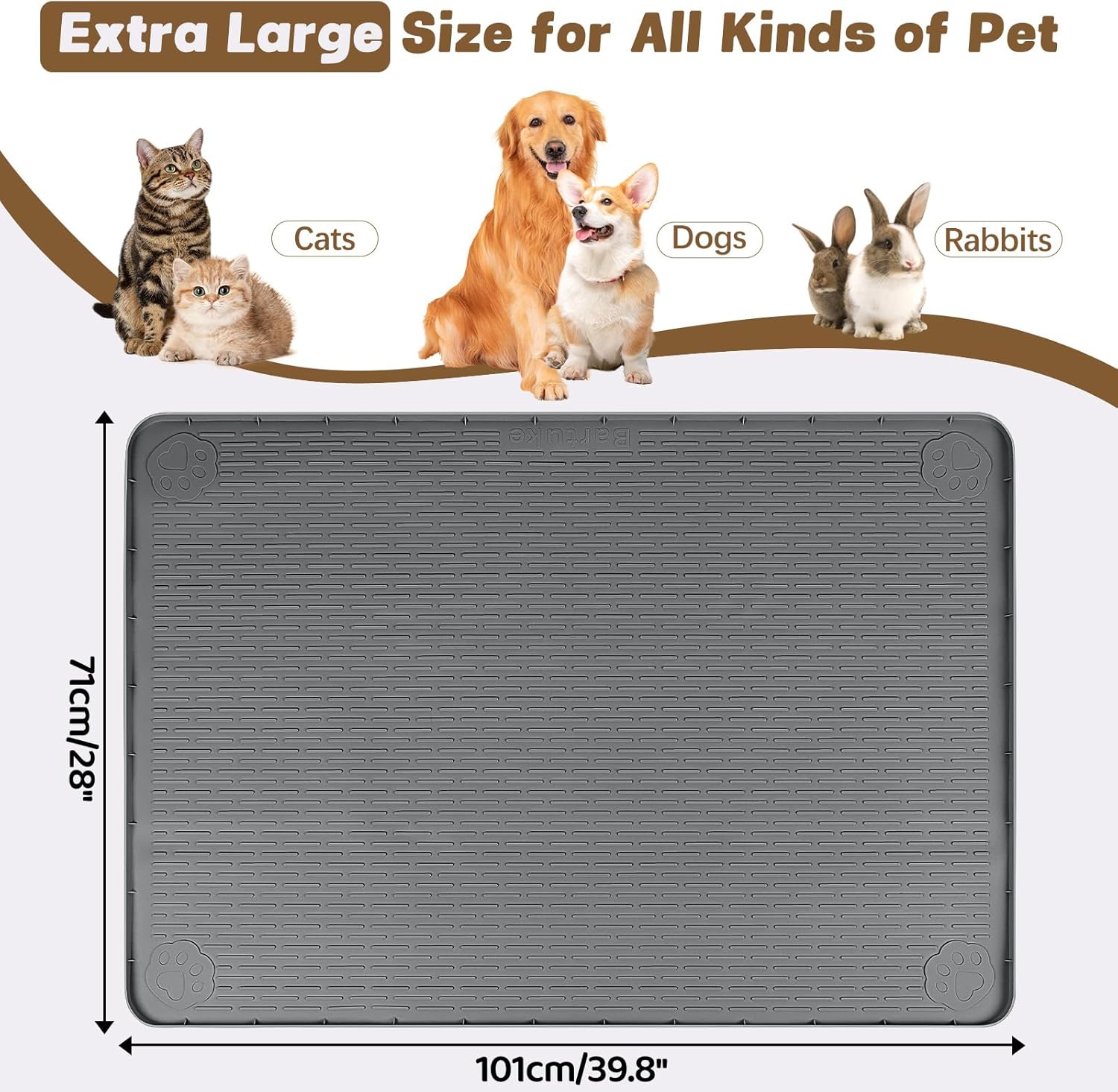 - Large Cat Food Mat: This large 40"x28" (101 x 71cm) cat food mat has enough space for multiple bowls, and perfect for dogs, cats and other pets to eat together, keep paws and floors clean