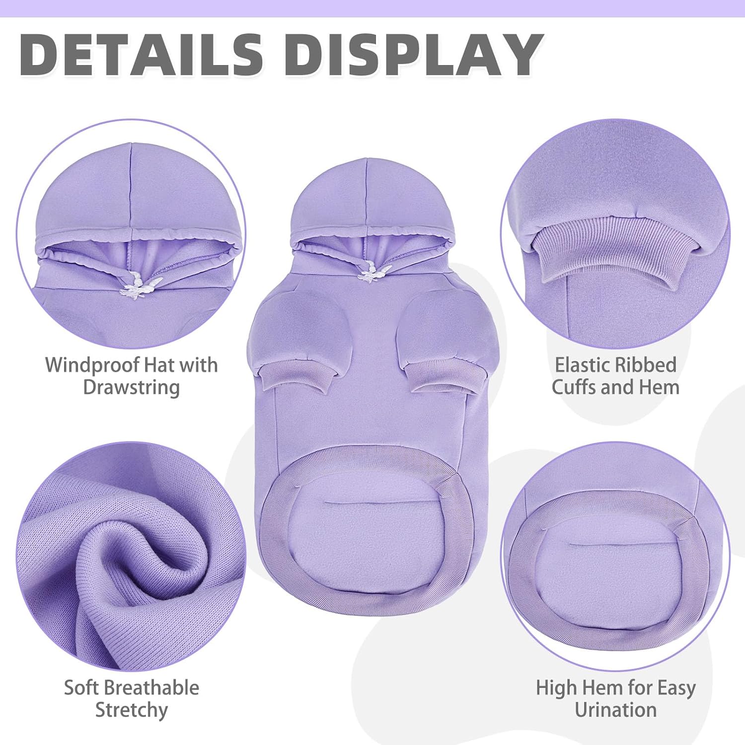KOOLTAIL Basic Dog Hoodie - Soft & Warm Dog Hoodie Sweater with Leash Hole and Pocket, Pet Winter Coat, Cold Weather Clothes Sweatshirt for Small Medium Large Dogs Puppy Cat Boys Girls Lavender XXL