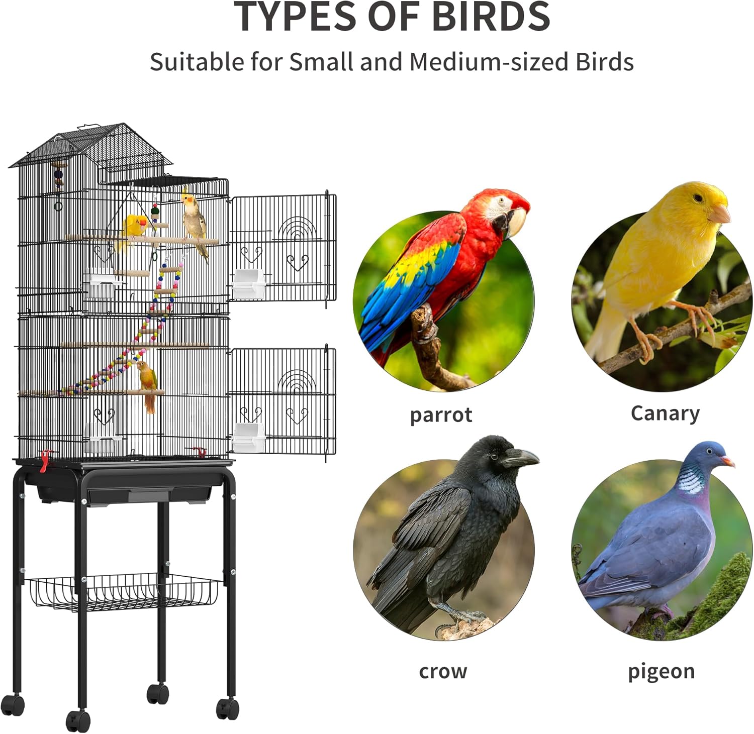YITAHOME 62 Inch Large Bird Cage - Metal Flight Cage with Rolling Stand, Feeding Doors & Hanging Accessories for Parrots Cockatiels Conures Lovebirds Parakeets Small Birds