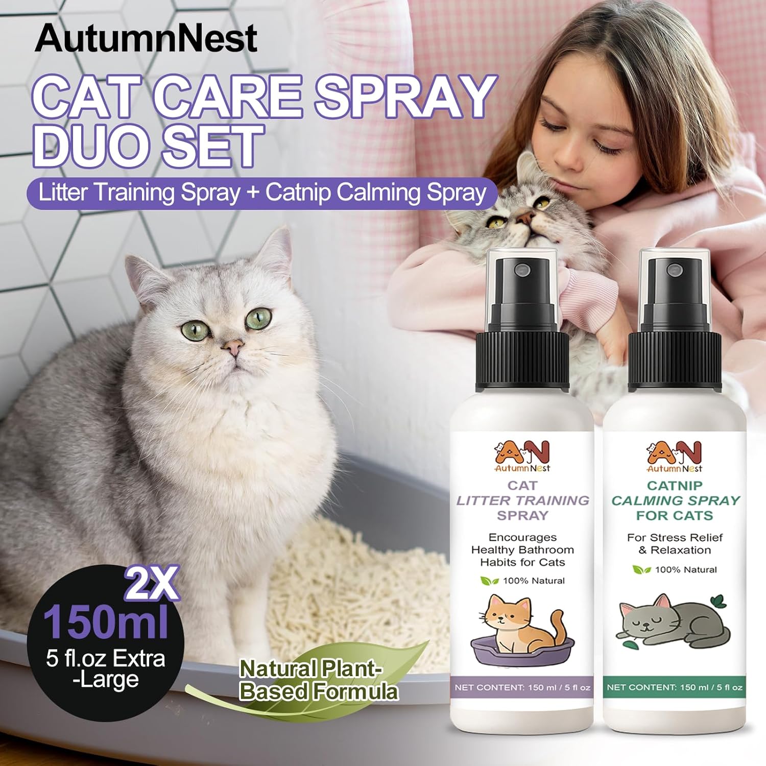 Cat Calming & Litter Training Spray Kit – 2-Pack 150ml Duo – Natural Catnip Calm Spray + Litter Box Attractant Spray – Safe Behavior Training Aid for Cats & Kittens