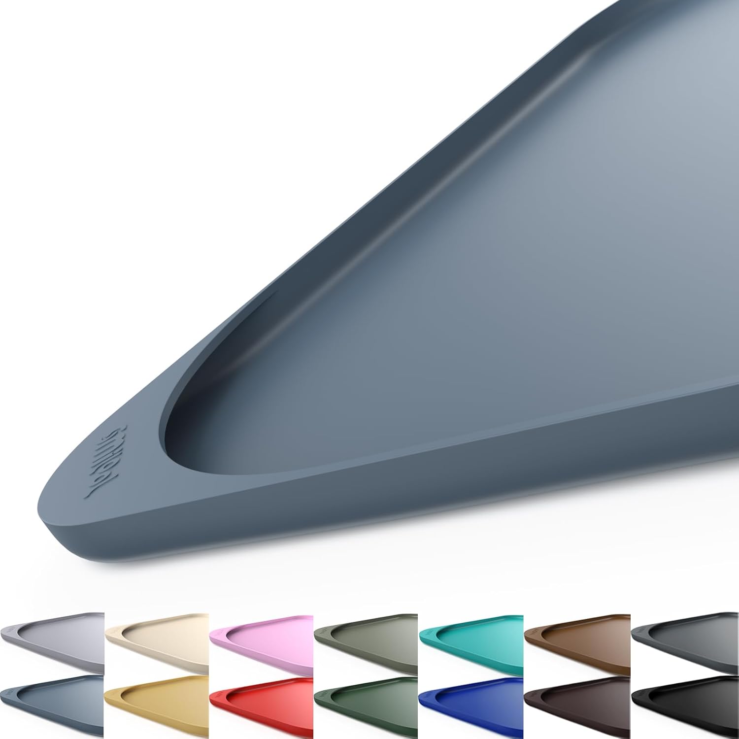 Silicone Pet Feeding Mat with Raised Edge & Residue Collection Pocket for Food and Water, Dog Bowl Mats, Cat Bowls Placemat with High Lip for Floor Waterproof, 24 x 16 x 0.8 Slate Blue