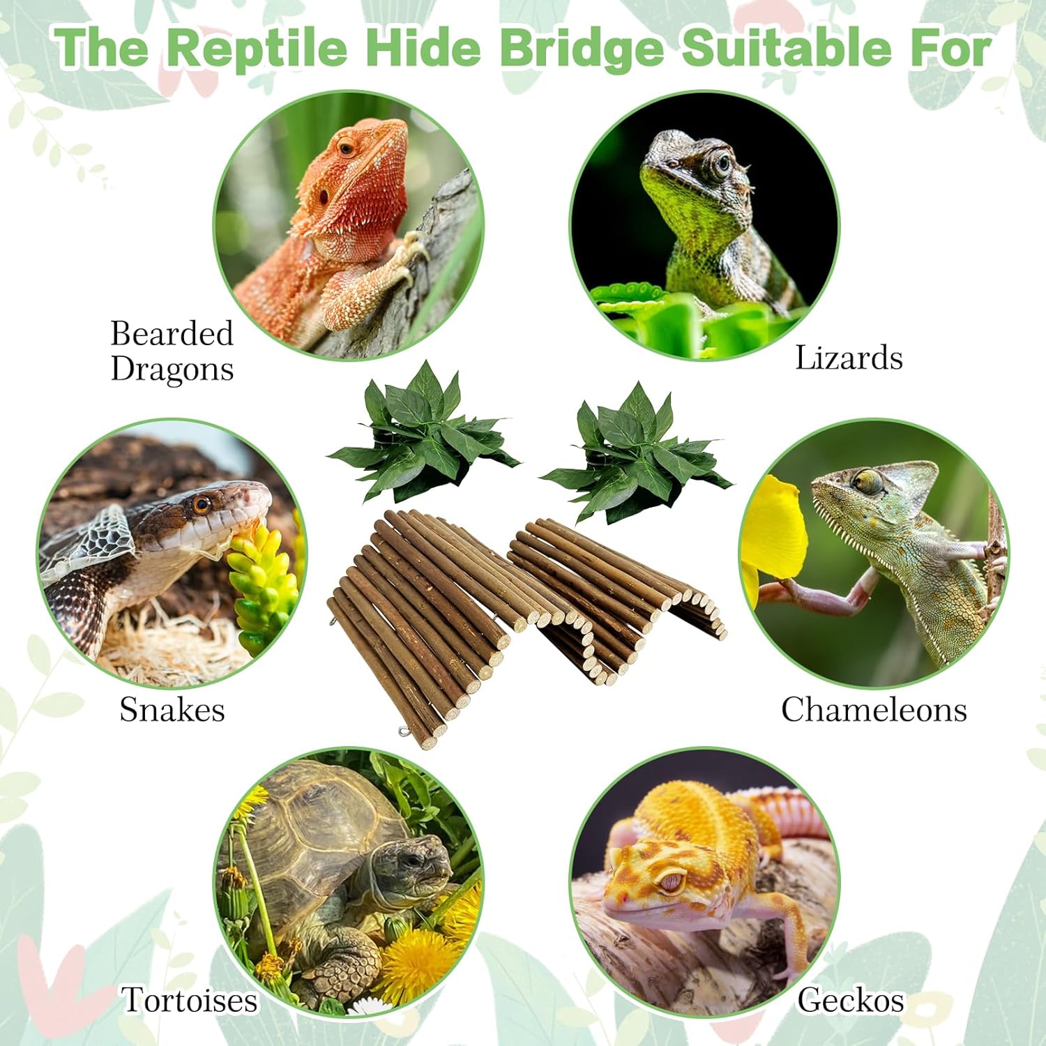 - Wide Use: This natural handmade wooden bridge is a great hide or enrichment for your reptiles. 19.7 x 9 in (LΓW) designed for bearded dragons, lizards, chameleons, geckos, tortoises, snakes and other reptiles. Suitable for chewing and climbing, rabbits, chinchillas, squirrels, and other rodent will also enjoy it