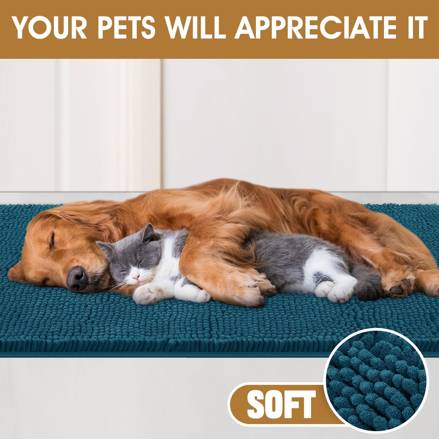 IM HOME Dog Door Mats for Muddy Paws, Chenille Absorbent Door Mats, Non Slip Heavy Mud Mat for Dogs, Soft Indoor Door Mat for Entryway, Mud Paws, Inside Floor,36" X 24", Teal Blue