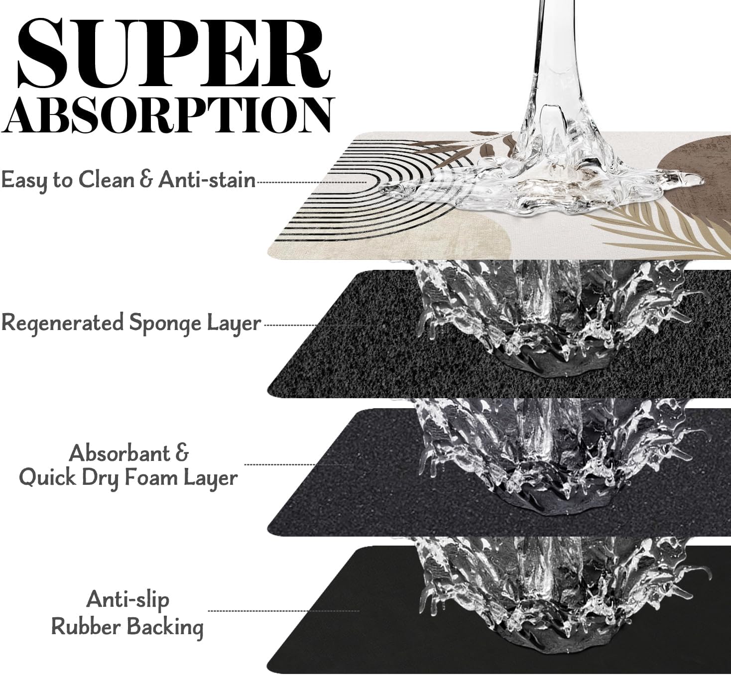 • Super Absorption: The dog mat for water bowl can absorb spilled water without leaving traces and dry quick, avoid wetting pet paws even for messy drinkers. And it does not attract pet hair like traditional silicone dog bowl mat.