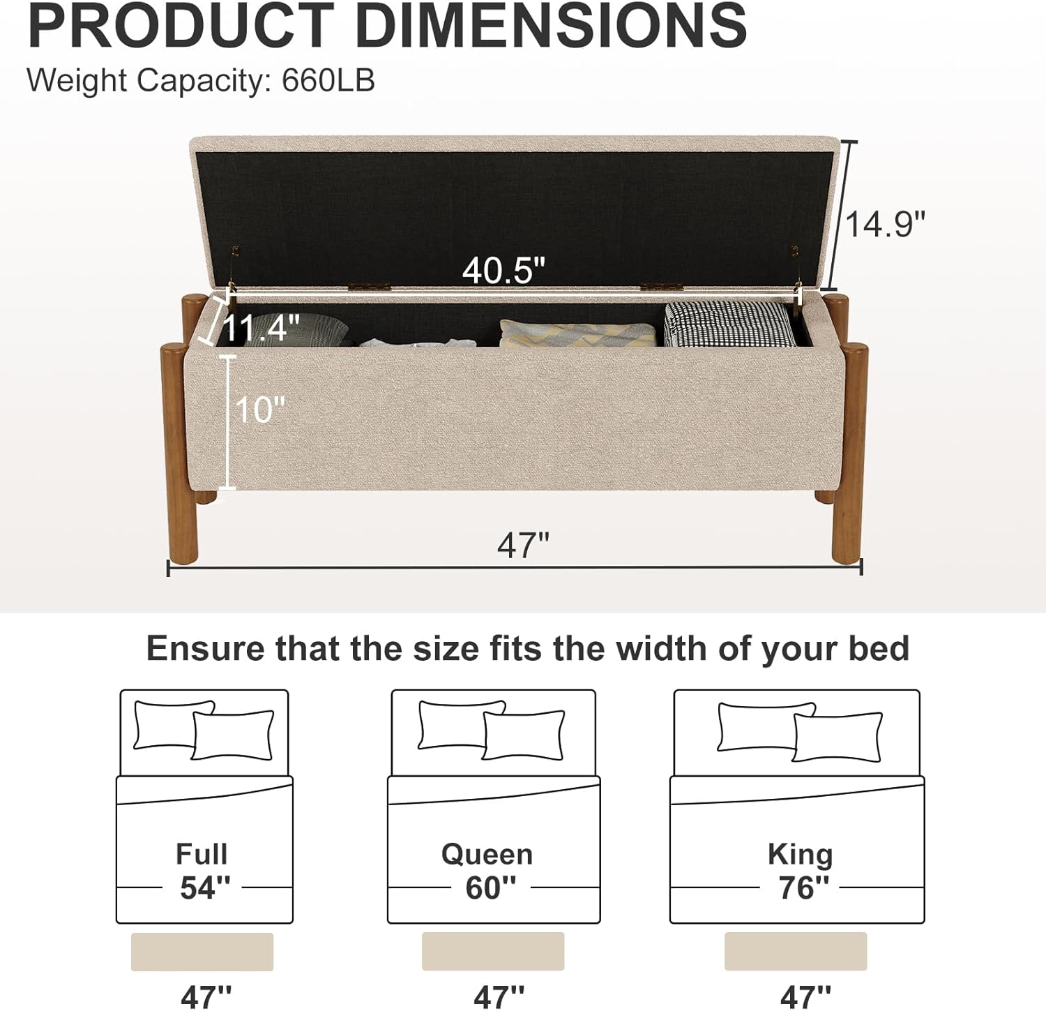 Storage Ottoman Bench, End of Bed Bench for Bedroom, 47" Boucle Upholstered Entryway Shoe Seat Bench, Holds up to 660 lb Storage Ottoman, Padded Blanket Chest Stool Foot Rest for Living Room Beige