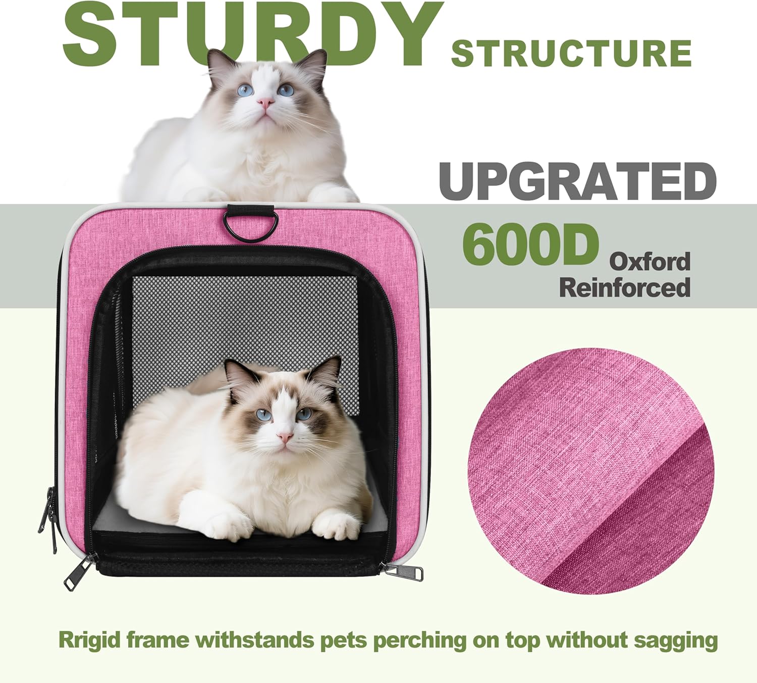 - Escape-Resistant - Self-locking zipper sliders prevent clever kitties from opening this animal carrying bag from the inside while traveling. Reinforced 600D oxford fabric prevents anxious cats or little dogs from claw damage