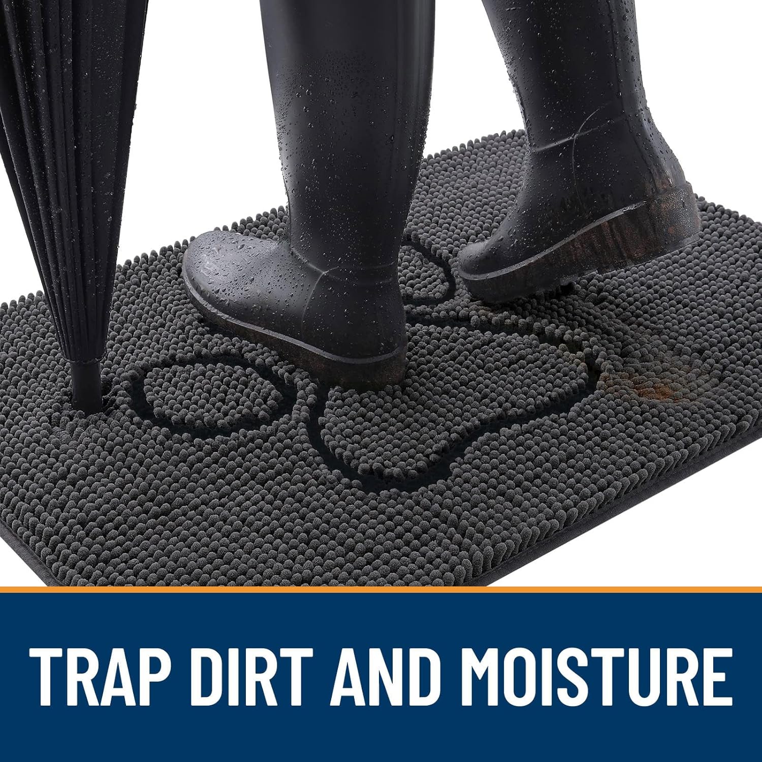 - [ABSORBS MOISTURE AND DIRT] OLANLY indoor dog mat for muddy paws is crafted to efficiently remove dirt and swiftly absorb moisture. With our doormat, your shoes will be instantly clear of any water, dust, grit, muck, sand, sleet, grass, slush, rain, or snow upon entering the house. It's an excellent choice for use as an entryway door mat, a welcoming door mat, or a dirt-trapping mat.