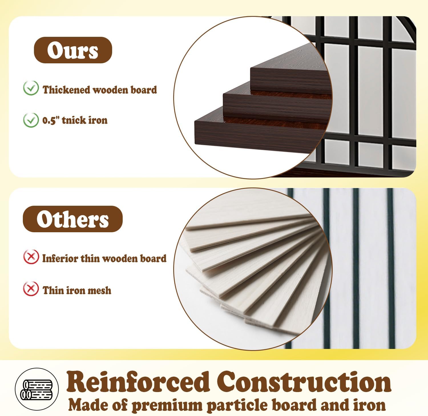 - 【Upgraded Reinforced Structure】 Built with premium particle board and a thickened iron frame, this dog kennel indoor delivers superior stability and durability. Its robust construction resists chewing, scratching, and daily wear—perfect for large breeds. Designed to last, it keeps your dog secure while blending seamlessly with your home decor.