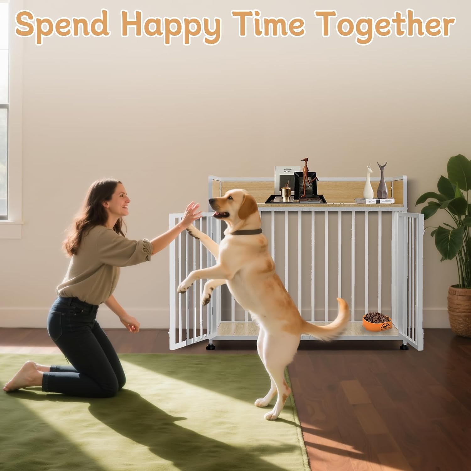 - Durable and Sturdy- Our large dog Kennel feature a robust design, combined with thickened specially made iron bars, ensuring excellent chew resistance and long-lasting performance.Adding a guardrail to the desktop can better store items and prevent them from falling.