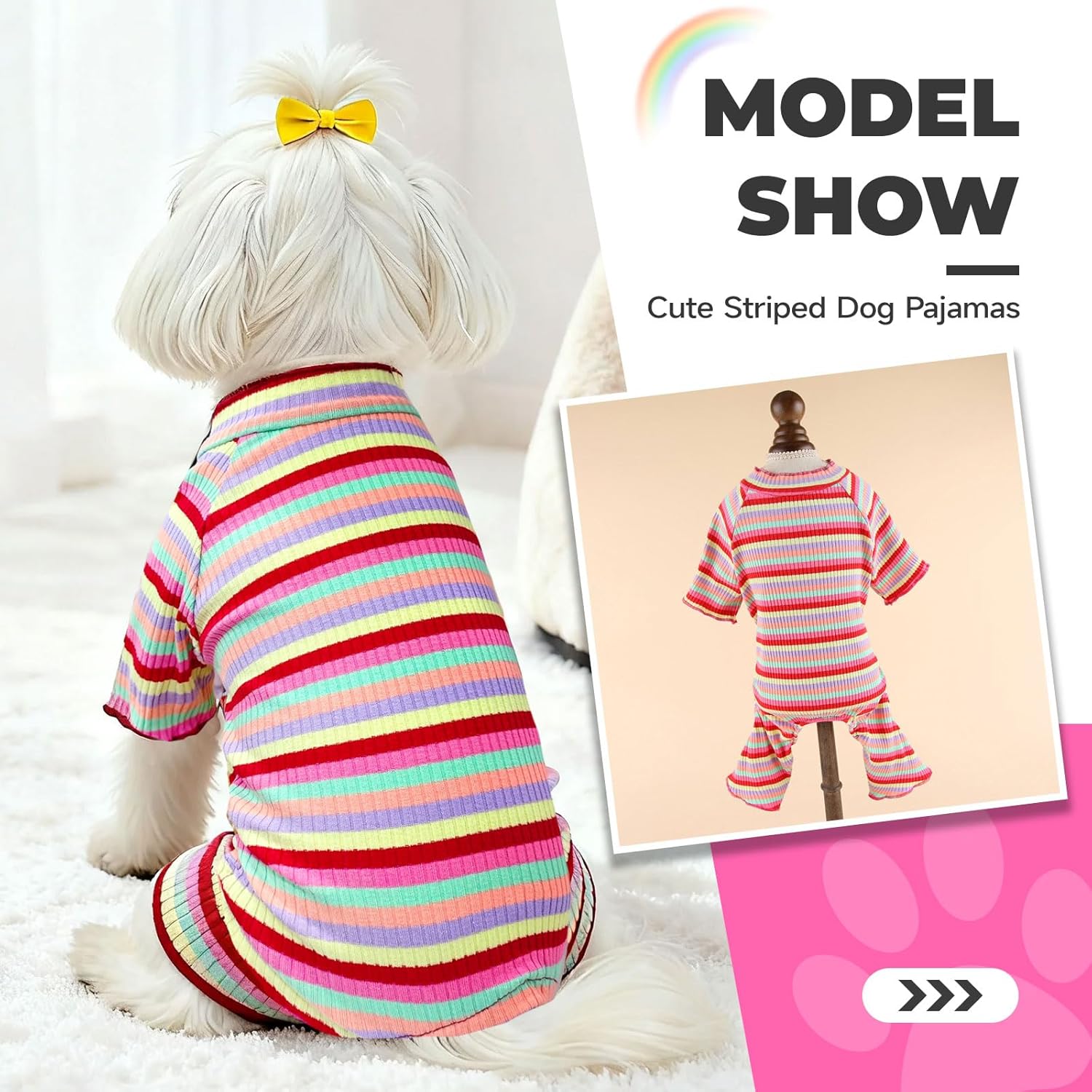 - VIBRANT STRIPED STYLE & 4 CHARMING COLORS: Elevate your pup's comfort and style with our adorable striped dog pajamas! Designed to be both cute and cozy, these PJs are perfect for a night in or fun photo opportunities. Choose from four vibrant colors—Pretty Pink, Grass Green, Sunny Yellow, and Ruby Red—to match your dog's unique personality and your personal style