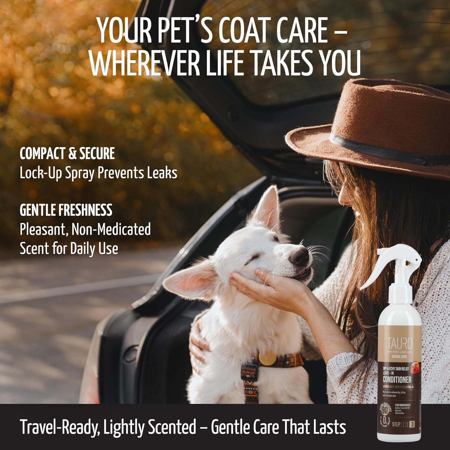 Tauro Pro Line Dog Conditioner Spray for Itchy Skin - Soothes Dry, Sensitive Skin, Calms Itching from Allergies, Dandruff - Leave in Pet Conditioner for Dogs, Cat & Puppy (Derma Care 8.5 Fl Oz)