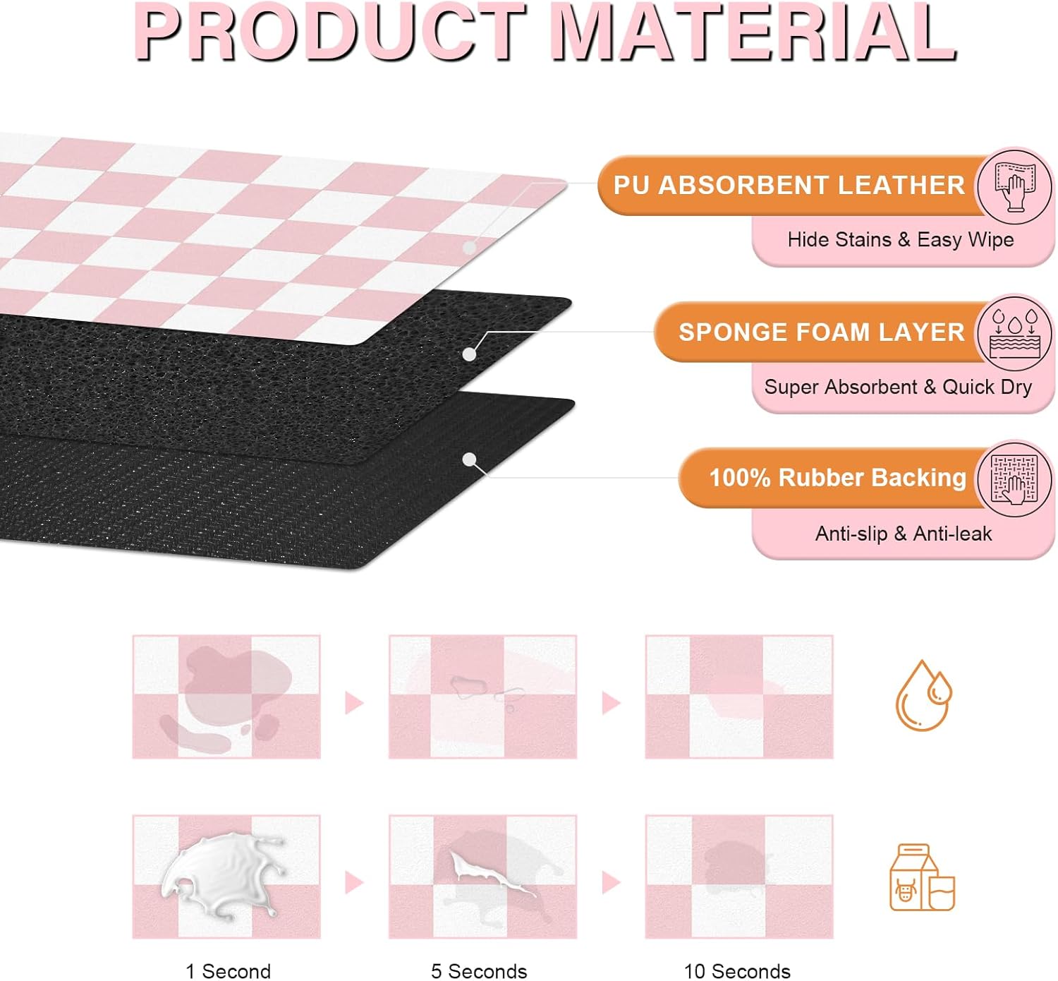 Pet Feeding Mat, 16"x 24" Absorbent Dog Food Mat, Checkered Cat Bowl Mats, Easy to Clean Pet Placemats, Quick Dry Dog Water Dispenser Mats for Messy Drinkers, Pink & White