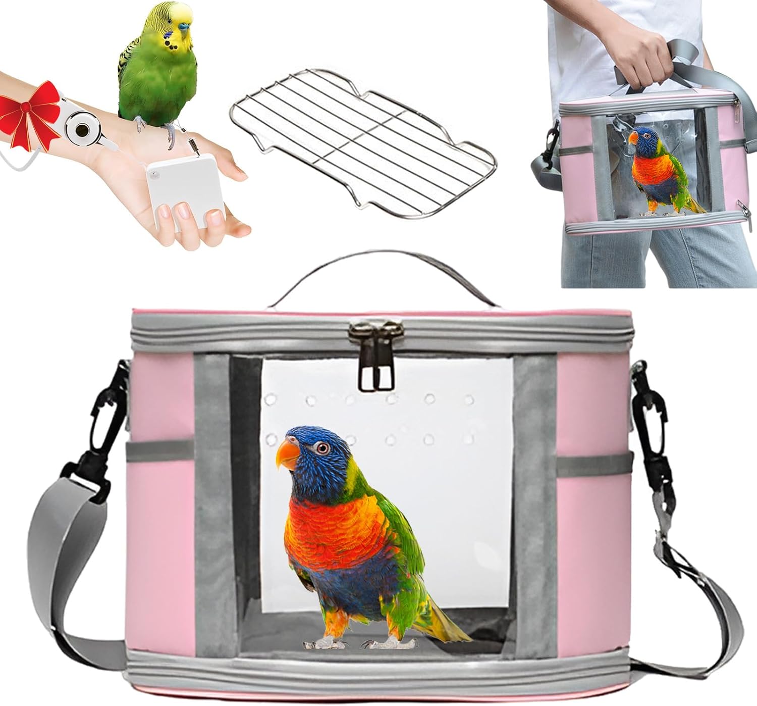 - [ Bird Travel Carrierm ] : Breathable design.With large and vent holes and mesh, pet carrier cage provides optimal ventilation and airflow to your bird. Front transparent window allows great scenery view while travel.