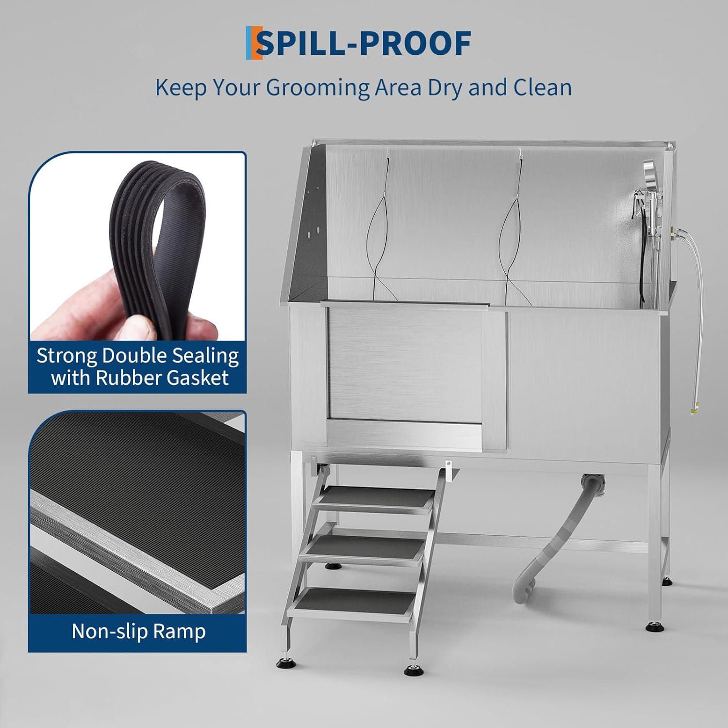 - Efficient Drainage System Removable floor grate prevents water accumulation and simplifies post-bath cleanup. Maintains tidy workspace during grooming sessions.