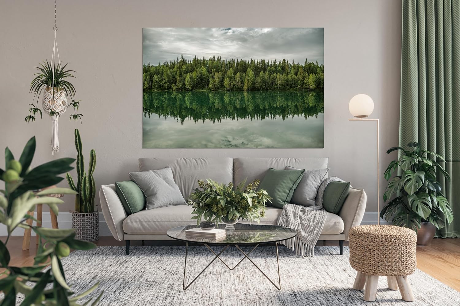Nature Wall Art Prints - Ocean Forest Mountain Lake Canvas Landscapes - Small to Extra Large Living Room Bedroom Kitchen Bathroom Décor (Forest Reflection, 24L" x 36W")