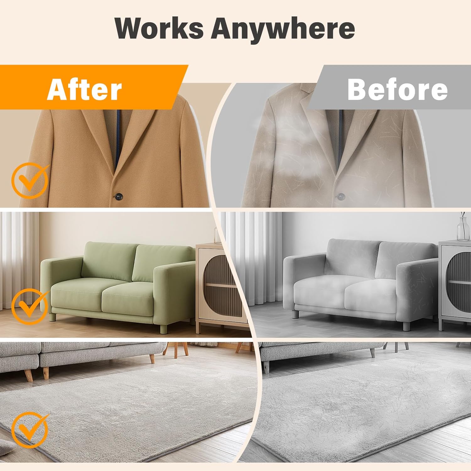 - Safe on All Surfaces - Gentle Yet Effective: Safe for delicate fabrics and powerful on tough upholstery. Whether youβre cleaning your black t-shirt, plush couch, or wool coat, this glove removes pet hair without scratching or damaging the surface