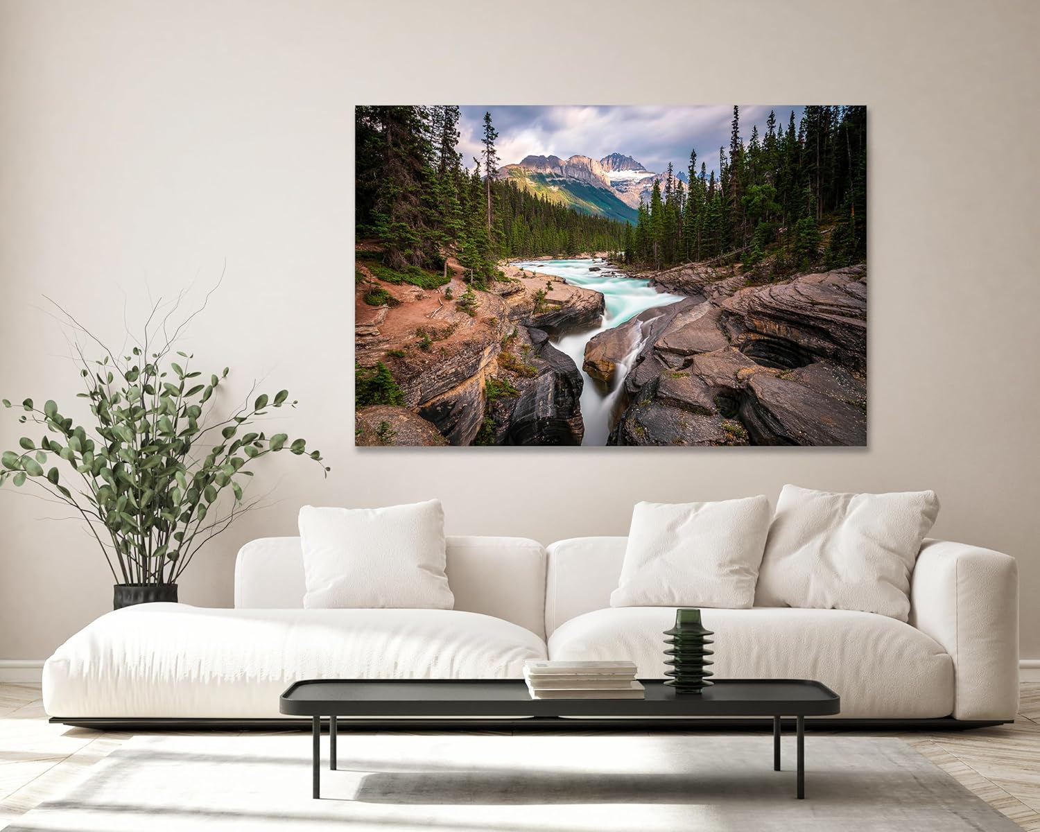 Nature Wall Art Prints - Ocean Forest Mountain Lake Canvas Landscapes - Small to Extra Large Living Room Bedroom Kitchen Bathroom Décor (Mountain River Waterfall, 28L" x 41W")