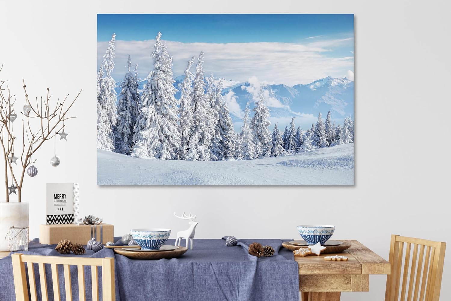 Nature Wall Art Prints - Ocean Forest Mountain Lake Canvas Landscapes - Small to Extra Large Living Room Bedroom Kitchen Bathroom Décor (Snow Covered Trees on Mountain, 16L" x 24W")