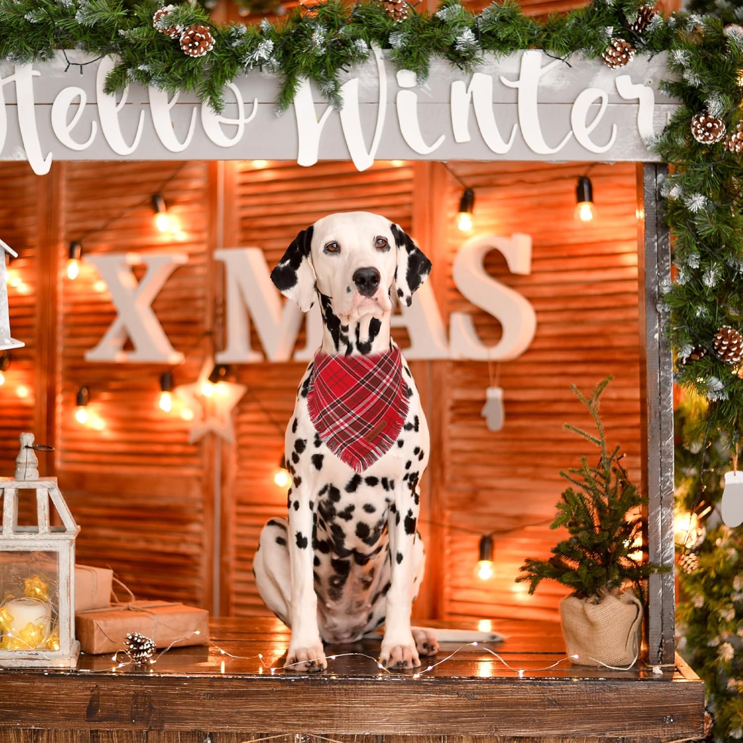 - Package: 2 * red plaid dog christmas bandanas for medium large dogs. This Christmas pet bandana set is a great gift to make your pet look lovely during the holiday season. Celebrate Christmas with your furry friend in style!